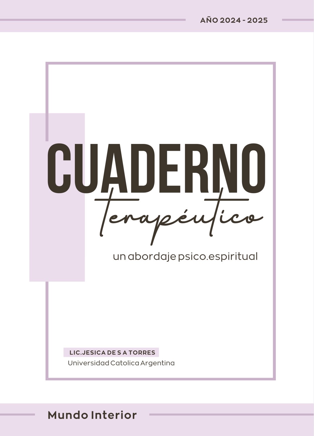 NUEVA EDICIÓN DE MUNDO INTERIOR! Los cuadernos terapéuticos son para acompañar tus procesos con la psico. Contiene: espacio para tomar nota de todo lo que va surgiendo durante las sesiones, preguntas de trabajo personal, espacio de oración, tips para sanar, qué es un tratamiento psicológico.